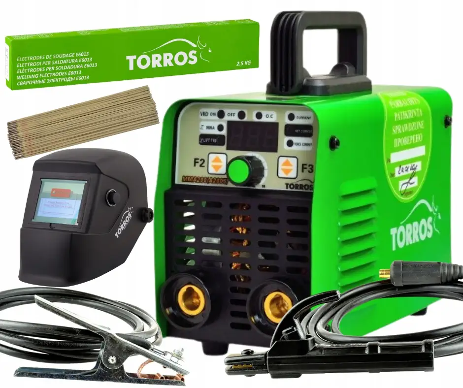 Producent: TORROS Ξ Tryby: MMA – TIG LIFT Ξ Funkcje: ARC FORCE – HOT START Ξ Prąd: 30 – 200A Ξ Zasilanie: 230V ± 15% Ξ Zestaw: SPAWARKA – PRZEWODY