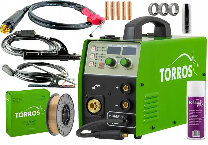 Spawarka Migomat Torros Super MIG 200 M2003 to inwertorowy półautomat spawalniczy przystosowany do spawania stali, stali nierdzewnej, aluminium i innych metali.