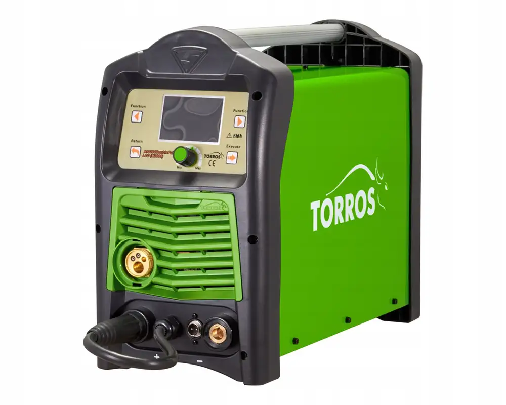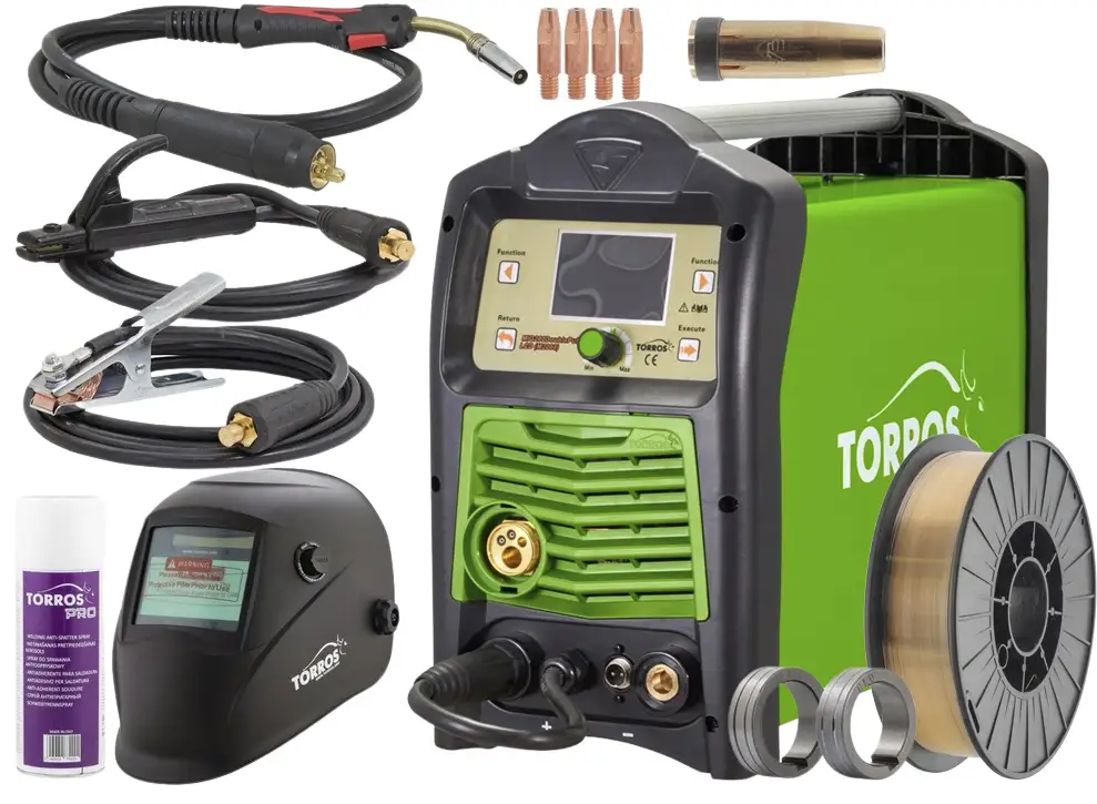 Spawarka Migomat Torros M2009 4R MIG200 Dual Puls LCD Synergia to inwertorowy półautomat spawalniczy przystosowany do spawania stali, stali nierdzewnej, aluminium i innych metali.